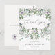 Beautiful birthday thank you postcard features a pretty watercolor floral emblem with elegant thank you calligraphy script. The back includes a personal message with return address. This card is perfect for a quinceanera thank you to guests, but can also be customized for any year!