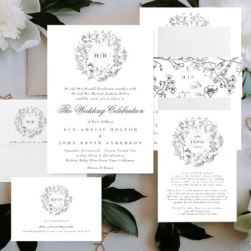Sketched Floral Monogram Wreath CollectionDesigned by Phrosné Barwood