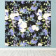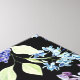 This product boasts a beautiful floral pattern with roses, Iris, and greenery on black background - Colors: pink, blue, green, black, white