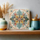 Bring a touch of global elegance to your space with this stunning floral pattern in soft muted teal, yellow and peach, inspired by traditional Moroccan and Mediterranean tiles. The intricate ceramic tile design showcases symmetrical shapes and ornate details, evoking the rich history and artistic craftsmanship of these regions. Whether used in home decor, party supplies, or personalized gifts, this pattern adds a sophisticated, worldly charm. The design is part of an exclusive collection, perfect for anyone looking to infuse their home or events with timeless beauty. Search ID1078 to see other products in this unique design set. Note: design adapted from generative content.