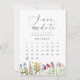 This elegant save the date card features a charming wildflower border in a mix of soft pastels and vibrant colors, bringing a fresh and romantic feel to your announcement. The modern calendar layout highlights your special day, while the couple’s names and wedding venue are displayed in a mix of graceful script and clean fonts for a timeless look. Perfect for giving guests a beautiful first glimpse of your celebration.