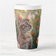 Snuggle up with this adorable latte mug featuring a fluffy kitten frolicking in a vibrant rose field. Its charming design adds a touch of comfort to your coffee breaks, making every sip delightful. Perfect for cat lovers and rose enthusiasts, this mug is a must-have for cozy moments!