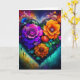 Valentine's Day card that can be personalized on the inside so you can add your own custom message. Front has a beautiful ai illustration of purple, blue and orange flowers inside of a heart.