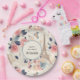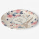 Paper plates with a lovely French themed pattern. Pretty flowers and an Eiffel tower and butterflies. Colors include pink, blue, peach and cream.