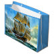 A beauty! Found in a box lot FULL of old prints and paper at my most recent auction attendance. I was unable to find exactly what the name for this type of ship is since all the examples I saw didn’t exactly match this one. The construction of the deck is exactly the same as what you’d see in a pirate movie. Neat, right? A marvelous image that looks equally marvelous on all kinds of EVERYTHING, including gift bags. Note that the scene appears on both sides of the bag, in mirror image. Note also that my shop has wrapping paper, and gift tags that match the bag. Wanna see more old? Here's my blog!! www.fullservicebohemian.blogspot.com