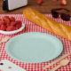 Solid light green, mint color disposable plate to compliment most tables. Let it be a girlie, shabby chic, romantic, or a modern theme.