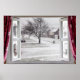 Beautiful frozen lake scene through an open window poster