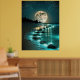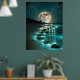 Beautiful Full Moon Beach Ocean Starry Night Poster