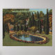 Beautiful garden in Savannah is a vintage illustration by The Tichnor Brothers. Garden includes a reflecting pond and yellow and red flowers with green trees and blue sky in background. Framed it be an elegant poster for your home decor.