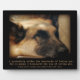 A memorial to our pets who are gone from this earth but alive in our hearts. A gorgeous German Shepherd Dog lays sleeping. Up against a dramatic, black background, it makes a stunning tribute. A wonderful remembrance gift for that special person who lost that special pet. Keep the plaque as it is or personalize with your own pet's name or other info you wish to include.