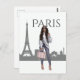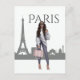 Beautiful Girl in Paris with Eiffel Tower Postcard