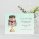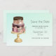Save the date card with a delicious looking layered party cake. This triple decker cake is adorned with pearls. Colors include rose gold, magenta, and gold. Designed with a shiny gradient for extra glitz glam and festiveness.