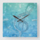 Beautiful glittery shining effect blue treble clef square wall clock