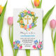 © Socialite Designs & LICENCORS. Beautiful Easter invitation with a gold cross, tulip frame and Easter eggs. A wonderful invitation to invite family and friends for an Easter brunch, egg hunt for the kids, or Easter dinner.
