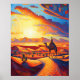 Beautiful Golden Hour Desert Sunset & Camels Poster