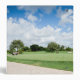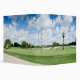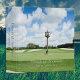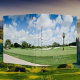 Enjoy this beautiful scene of a golf course. Panoramic view of a beautiful green, golf course with blue sky. Clock on front and golf cart on back. Templates for name and subtitle.