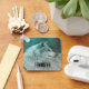 Personalized keychain with a photograph of a gorgeous furry fluffy grey wolf. In the background is a dark forest with trees. Magical mystical vibe.