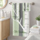 Are you a nature lover? Take it a step further with this beautiful green birch tree bath towel set. Using cursive green font for personalization, write your family name in the bottom right hand corner. Add to your shopping cart today!