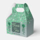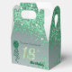 The birthday favor box features gleaming Falling Green Glitter on Green gradient with Bright Stars. The Gold and Green Glitter