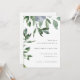 This modern and minimal botanical wedding invitation features beautiful watercolor greenery and a simple dusty blue flower.