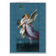 vintage art with painting of a beautiful guardian angel holding a child and flowers as she floats above the land.