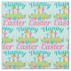 Beautiful Happy Easter fabric for a Christian celebrating Jesus Christ rising on Easter Sunday with pretty teal and pastel pink writing and crosses above a green field of flowers. A cute Easter holiday design in lovely colors.