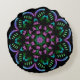 Beautiful round decorative pillow in shades of blue, green, and fuchsia, perfect for decorating your home.