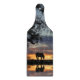 A beautiful horse is reflected in a calm pond, framed by a southwestern sunset that silhouettes both the horse and an oak tree. Absolutely stunning!