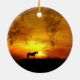This is a beautiful ornament showcasing a horse and oak trees at sunrise. With vibrant colors, it’s a stunning piece of award-winning fine art.