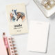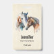 Name badge with a beautiful watercolor drawing. Featuring a pair of horses, brown and white. Head and neck visible with dripping paint along the base of their neck. Southwestern vibe.