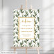 Welcome your guests in timeless elegance with this minimalist eucalyptus wedding welcome sign featuring deep green, dark green, hunter green, and forest green foliage accented with shimmering gold leaves. Designed in a modern watercolor or boho style, this customizable poster adds a natural and sophisticated touch to any wedding décor. Perfect for rustic, garden, boho, or classic weddings, it can be personalized with your names, wedding date, or a special message to make your ceremony truly unique. The lush greenery paired with delicate gold accents creates a romantic atmosphere that impresses from the moment guests arrive. This versatile welcome sign is ideal for displaying at entrances, reception areas, or ceremony spaces, blending beautifully with floral arrangements, tablescapes, and other décor elements. A chic and memorable choice for couples who want their wedding to feel elegant, natural, and unforgettable.