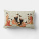 This very beautiful Japanese Art design throw pillow would add a sense of elegance to any room. It depicts Geisha Girls in beautiful patterned kimono's engaging in daily life and has a Japanese block print design for the background.