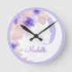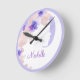 Nature Floral inspired wall decor clocks with monogram space you can personalize with any ladies or girls name or monogram initials in a beautiful botanical design in shades of pink, purple, and peach colors.