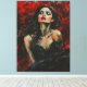 This artwork is a celebration of beauty, grace, and timeless elegance. The closed eyes suggest a moment of introspection or quiet contemplation, inviting viewers to appreciate the lady's inner radiance. The combination of elements - the lady's features, the red background, and the flowing black hair - coalesce into a visual symphony, making this canvas a striking addition to any space.