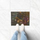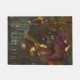 This design features a painting by the English Pre-Raphaelite artist John William Waterhouse (1849–1917). It shows an attractive woman in a Medieval woodland. There is a knight in armor kneeling down beside her. She is wrapping her long brown hair around his neck, bringing him closer to her as looks lovingly into his eyes. She is wearing a purple dress and she has bare feet. There are flowers strewn around her. The knight looks bewildered but entranced by the woman's beauty. The scene is based on a ballad by English poet John Keats called "La Belle Dame sans Merci" [The Beautiful Lady Without Mercy]. The poem is about a fairy who condemns a knight to an unpleasant fate after she seduces him with her beautiful eyes and singing. The original artwork was painted by John William Waterhouse in 1893.
