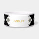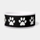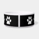 Beautiful large dog bowl with monogram space you can personalize with your dog name, simulated jewel gemstone bling printed on the bowl, along with background you can customize. In addition you'll find cute dog paw prints all over the bowl. Use yours for a water dish, food dish, or catchall for all your doggy treats.