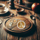 This beautiful leaf or tree in a cup of latte is carefully made by baristas pouring cream into a cup of espresso. A brown dotted border surrounds it.