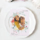 This pretty muted purple lavender wedding save the date announcement features colorful watercolor blooms and delicate soft peach, ivory white, and pink flowers, with subtle green leaves which add a soft beauty to this romantic design. A beautiful arch shape photo sits in the middle of the card. Shop this store for coordinating wedding invitations.