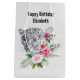Gift bag with a beautiful illustration featuring a gray, black and white leopard portrait. This lovely animal is surrounded by a tropical flower bouquet. Elegant, exotic and lovely.