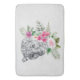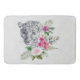 A bath mat with a beautiful illustration featuring a gray, black and white leopard portrait. This lovely animal is surrounded by a tropical flower bouquet. Elegant, exotic and lovely.
