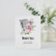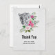 Thank you postcard with a beautiful illustration featuring a gray, black and white leopard portrait. This lovely animal is surrounded by a tropical flower bouquet. Elegant, exotic and lovely.