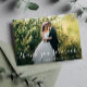 A beautiful script design with a wonderful image of the bride and groom. Add a personal thank you message at the back.
