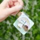 The key chain is made of metal and really sturdy. The flower design is really cheerful. The logo and colors are clear and crisp!