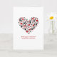 White card with black paws and red hearts in heart shape with “Wishing you a heart full of beautiful memories” below it in red.