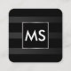 Beautiful Monogram Chic Stripes Faux Silver Frame Square Business Card