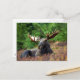 Beautiful moose with big antlers laying on the ground with green trees in the background. Great gift for your mother, father, sister, any other relative, loved person, yourself in birthday, anniversary, Christmas or any other special day.