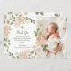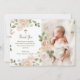 Beautiful Neutral Floral and Cross | Photo Baptism Thank You Card