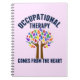 Occupational Therapy Comes from the Heart. A pretty pink inspirational OT quote gift for your occupational therapist featuring a cute rainbow tree with helping hands as the trunk of hope. A beautiful present.