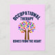 Occupational Therapy Comes from the Heart. An inspirational OT quote postcard for your occupational therapist featuring a cute rainbow tree with helping hands as the trunk of hope.