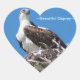 Photograph of a Beautiful Osprey or Hawk, displayed on a Heart Sticker.
